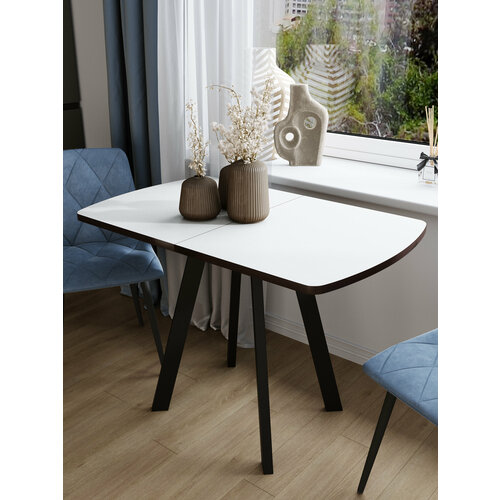 Стол на кухню Руби. Под мрамор, раздвижной. Ножки черные