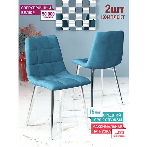 Комплект стульев для кухни Чили 2 шт, велюр Holland, каркас хромированный