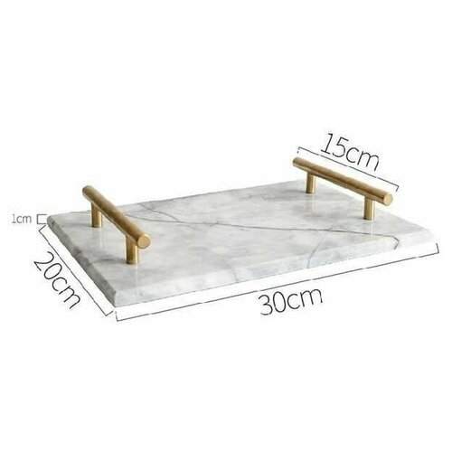 Мраморный поднос, 30х10 см, с золотыми ручками