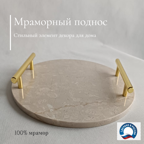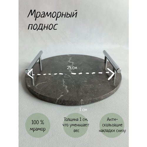 Мраморный поднос круглый, Органайзер для хранения с ручками, 29 см