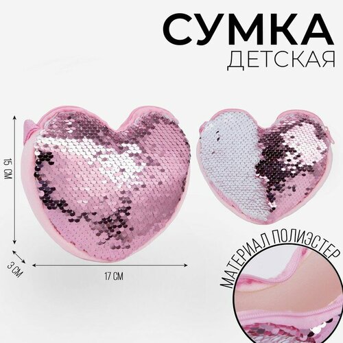 Сумка детская, с пайетками, сердце, 17 х 15 х 1 см, цвет розово-белый цвет