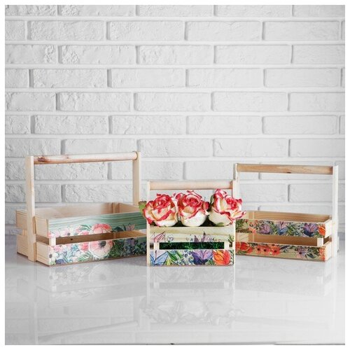 Набор кашпо деревянных подарочных Капоне "Полевые цветы", 3 в 1, ручка