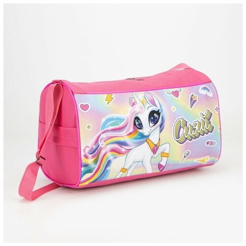 Сумка спортивная «Единорог», на молнии, 2 наружных кармана, цвет розовый