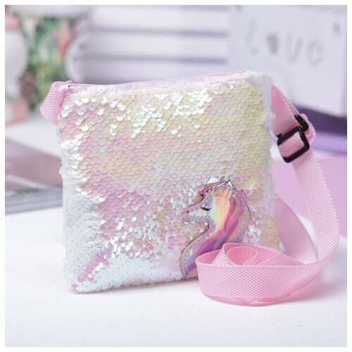 Сумка детская «Единорог», отдел на клапане, цвет белый/розовый