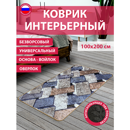 Коврик комнатный безворсовый интерьерный для спальни, детской, гостиной, кухни 100х150 см В144-77