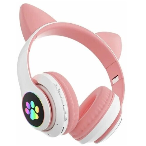 Беспроводные наушники с ушками кошки / наушники детские / светящиеся наушники (розовые)