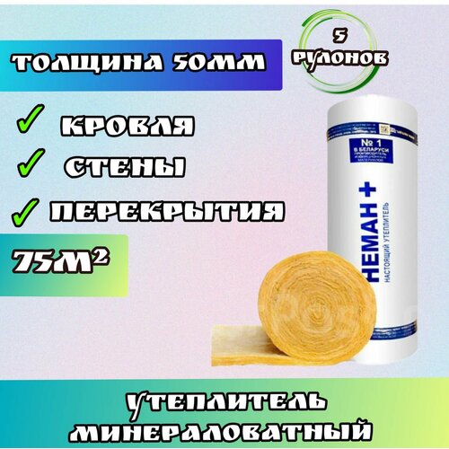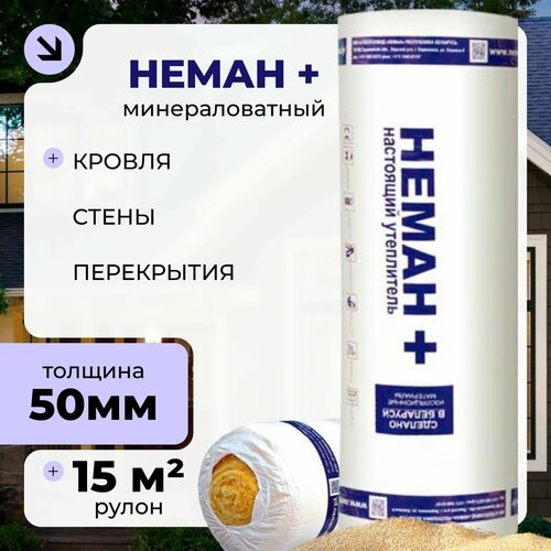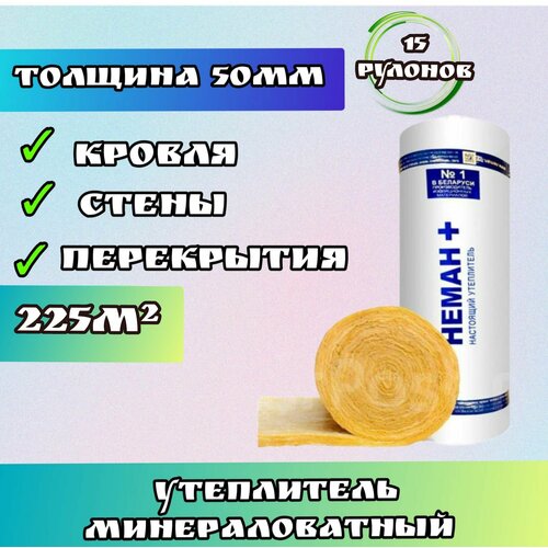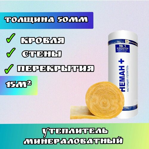 Утеплитель в рулоне 1 шт. 15м2 минеральная вата 50мм Неман + для стен, кровли, перекрытий