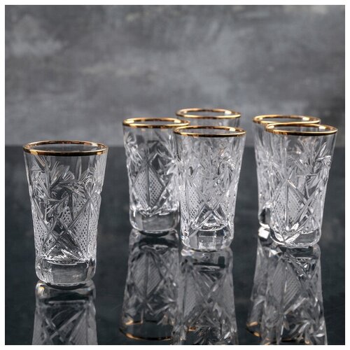 Набор стаканов для вина «Мельница», отводка золотом, 35 мл, 6 шт