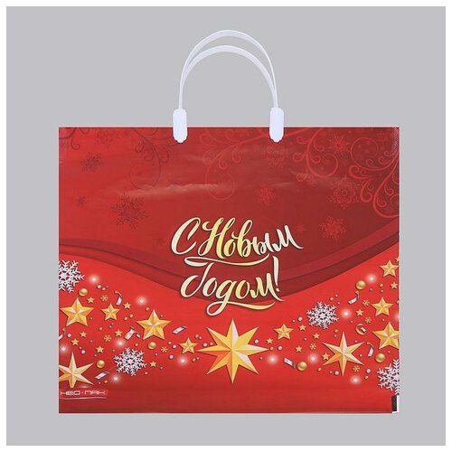 Пакет "Золотые звезды", полиэтиленовый с пластиковой ручкой, 37 х 35 см, 90 мкм (5шт)
