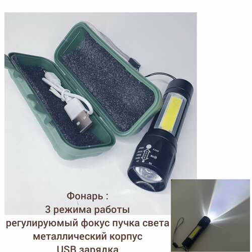 Фонарь школьный с USB зарядкой в металлическом корпусе /металлический фонарь в пластиком чехле /удобный фонарь длина 9см с ручкой-шнурком