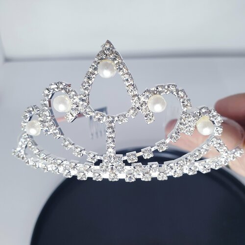 Диадема с жемчугом/корона на праздник серебристая /украшение для невесты на волосы