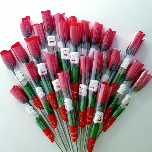 Искусственные розы в наборе 24 цветка/декоративная роза с мишкой / сувенирная роза с медведем