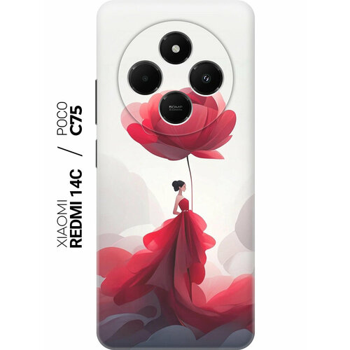 Силиконовый чехол на Xiaomi Redmi 14C / Poco C75 с принтом "Цветочная девушка в красном"