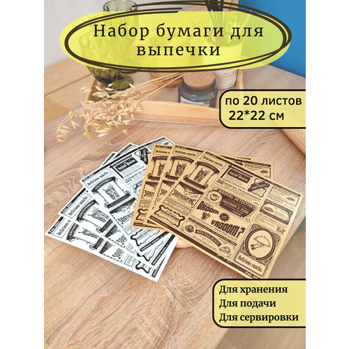 Бумага для выпечки и сервировки набор по 20 листов белого и коричневого цвета принт Газета