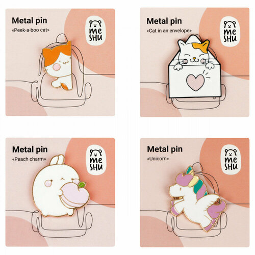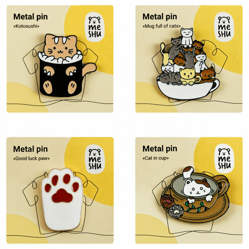 Набор металлических значков MESHU "Сat compilation" эмаль 4шт 1 шт