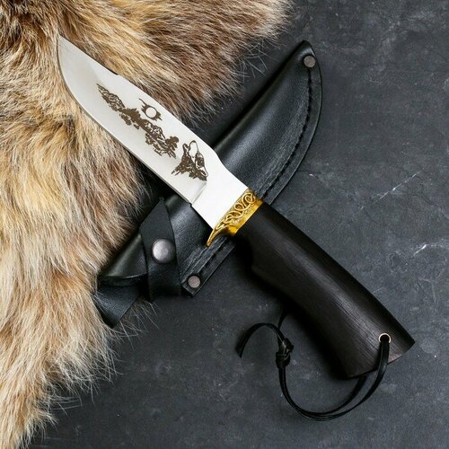 Нож кавказский "Шаман" с ножнами, гарда -латунь, сталь - 65х13, рукоять - граб