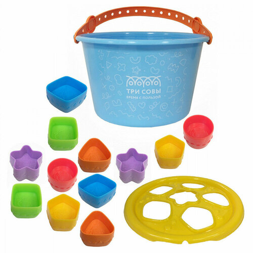 Набор для песка ТРИ совы сортер-ведро "Забавные мордашки" 14 предметов (ведро крышка 12 формочек) 1 шт