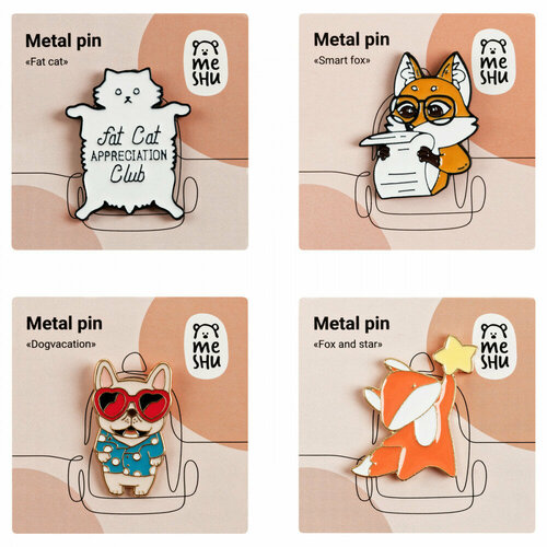 Набор металлических значков MESHU "Cute animals" эмаль 4шт 1 шт