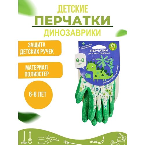 Перчатки детские садовые нейлоновые с полимерным покрытием, «Динозаврики», р4 (6-8 лет), «Нетипичный Фермер»