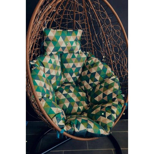 Подушка со съемным чехлом на подвесные качели кокон, с подголовником MotPro.brothers 120х15, Зеленые ромбы+зеленый