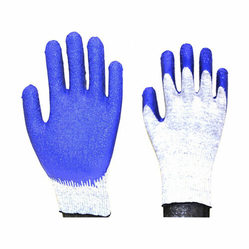 Перчатки х/б с латексом, рельефное покрытие, синие