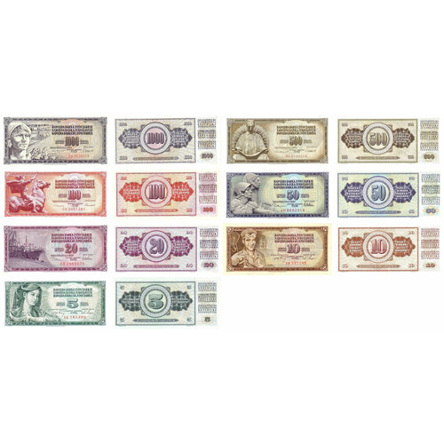 Югославия 1968 - 1981 набор 7 банкнот UNC