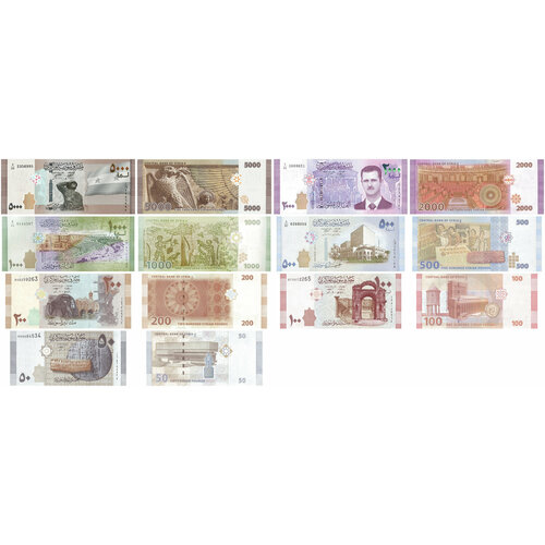 Сирия 50 - 5000 фунтов 2009 – 2021 UNC - набор 7 банкнот