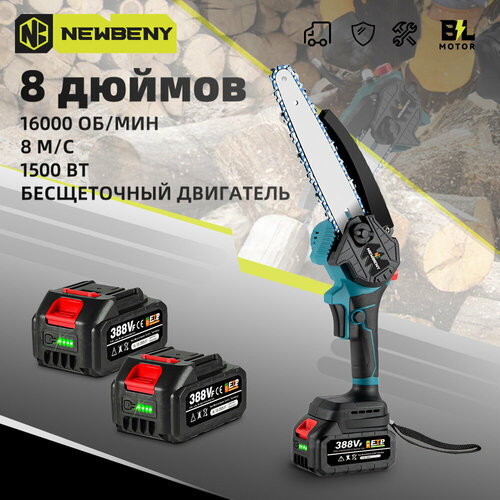 Пила аккумуляторная цепная Newbeny мини с двумя аккумуляторами 8 дюймов /Бесщеточный двигатель/Со смазочным патрубком