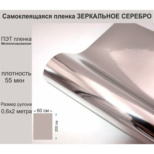 Самоклеящаяся, металлизированная ПЭТ пленка зеркальное серебро 0,6х2 м.