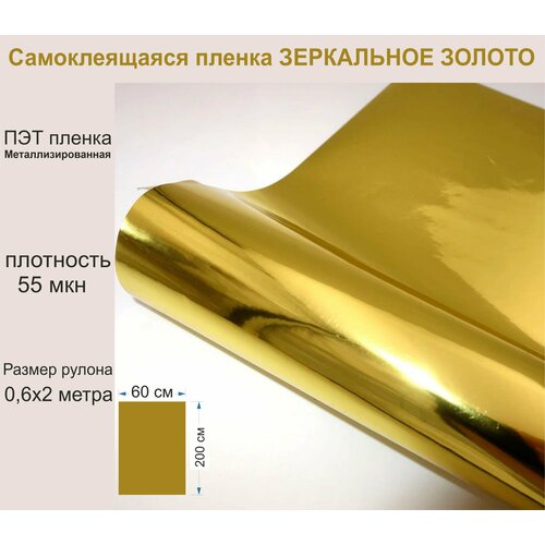 Самоклеящаяся, металлизированная ПЭТ пленка зеркальное золото 0,6х2 м.