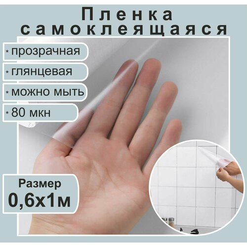 Самоклеящаяся прозрачная пленка для мебели, для дизайна и интерьера. Глянцевая, 80 мкн. 0,6х1 метр.