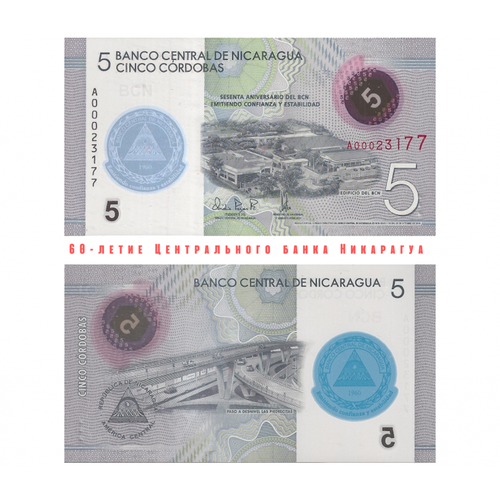 Никарагуа 5 кордоба 2019 г 60-летие Центрального банка Никарагуа UNC Пластиковая / Юбилейная!