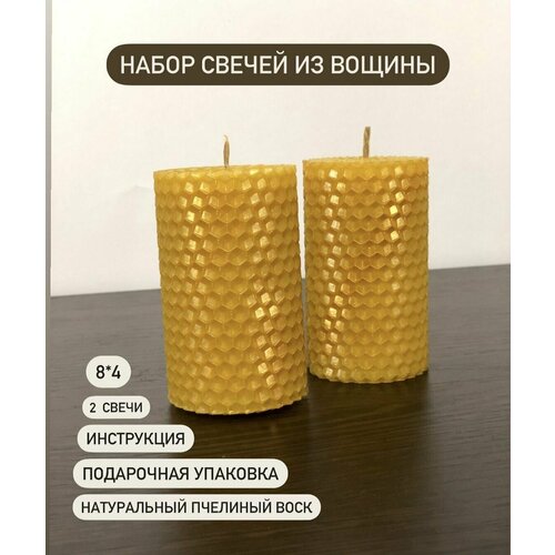 Набор Свеча медовая из вощины, натуральный пчелиный воск,2 шт.