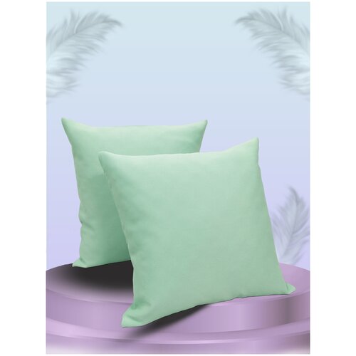 Комплект декоративных наволочек 45х45, портьерная ткань сатен зеленая платина