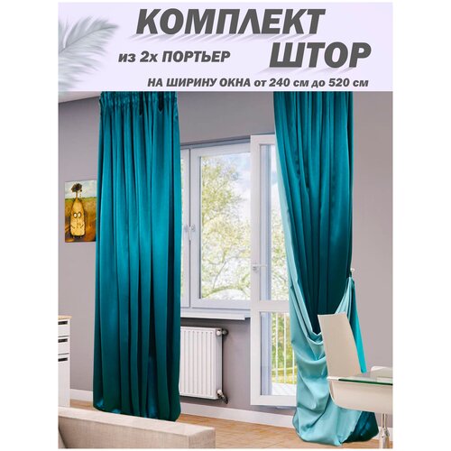 Комплект штор из 2х портьер (ткань блэкаут двухсторонний голубой синий капри)