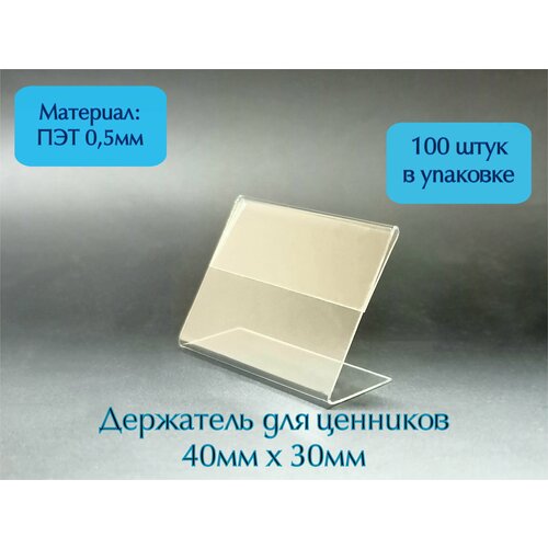 Ценникодержатель, Держатель для ценника 40х30мм ПЭТ 0,5мм Упаковка 100 штук