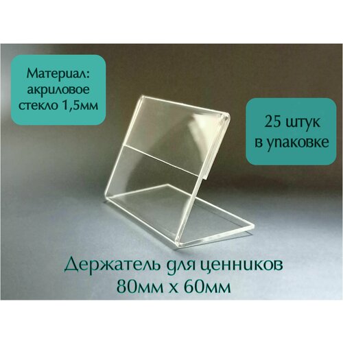 Ценникодержатель, Держатель для ценника 80х60мм, Орг. стекло 1,5мм, 25 штук