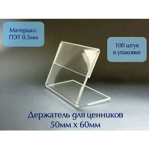 Ценникодержатель, Держатель для ценника 60х50мм, ПЭТ 0,5мм, 100 штук