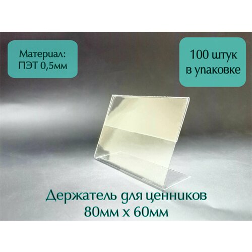 Ценникодержатель, Держатель для ценника 80х60мм, ПЭТ 0,5мм, 100 штук