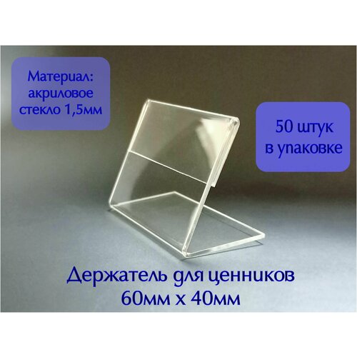 Ценникодержатель, Держатель для ценника 60х40мм, Орг. стекло 1,5мм, 50 штук