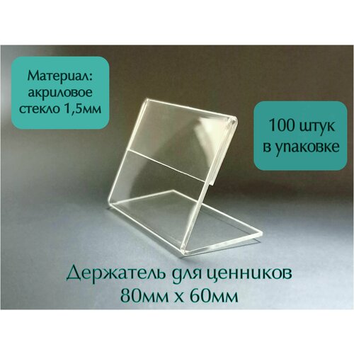 Ценникодержатель, Держатель для ценника 80х60мм, Орг. стекло 1,5мм,100 штук