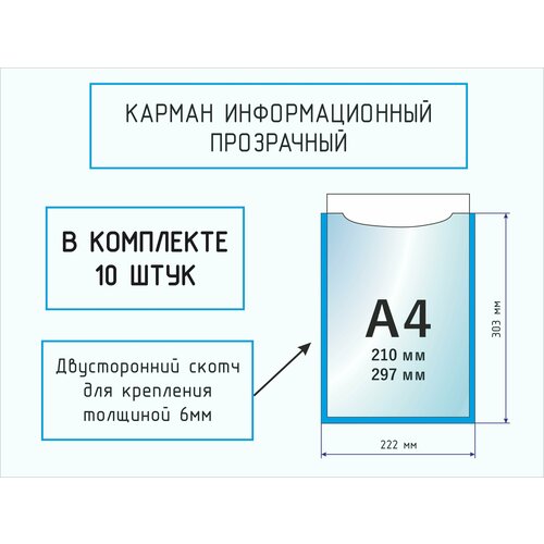Карман информационный А4 для стенда ПЭТ 0,5 на скотче упаковка 10 шт