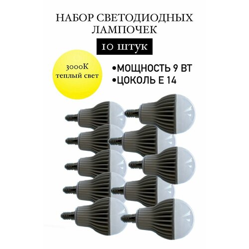 Светодиодные лампочки Е14 10 штук, 9 ватт, теплый свет