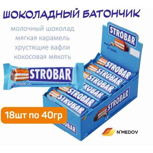 Шоколадный батончик с кокосом STROBAR, 40 грамм, 18 штук, Узбекистан