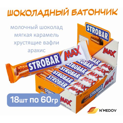 Шоколадные батончики с орехами Strobar MAX, 18штук, 60грамм, N'Medov, Узбекистан
