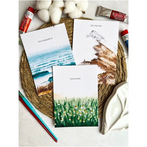 Набор акварельных открыток "Чувствуй", "Наслаждайся", "Достигай" 3 шт. 14,8 * 10,5 см