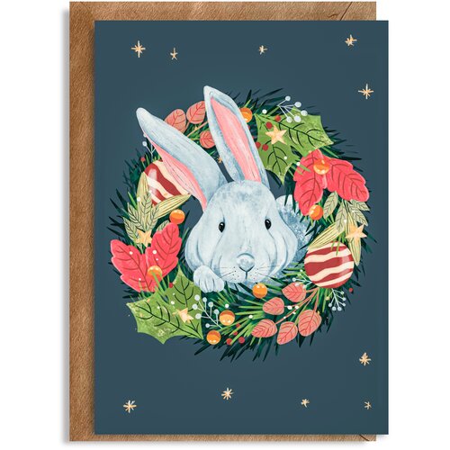 Новогодняя открытка "Кролик" 14,8 * 10,5 см с конвертом