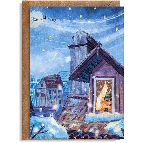 Зимняя/новогодняя открытка "Время волшебства" 14,8 * 10,5 см с конвертом