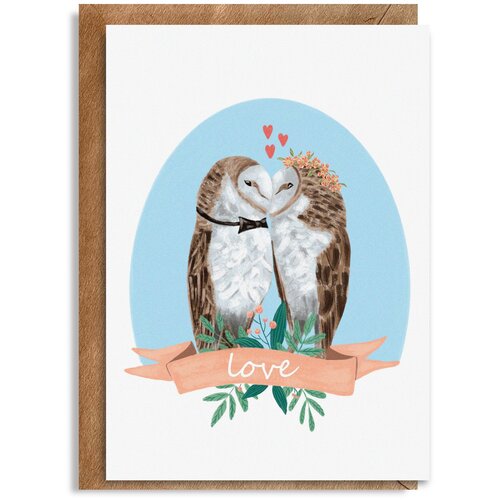 Открытка с совами "Любовь" 14,8 * 10,5 см с конвертом