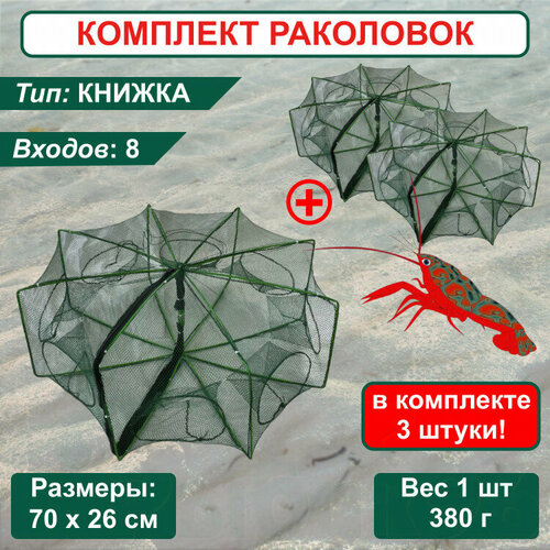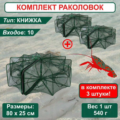 Раколовка Книжка для рыбалки, ловушка для раков 10 входов 3 штуки